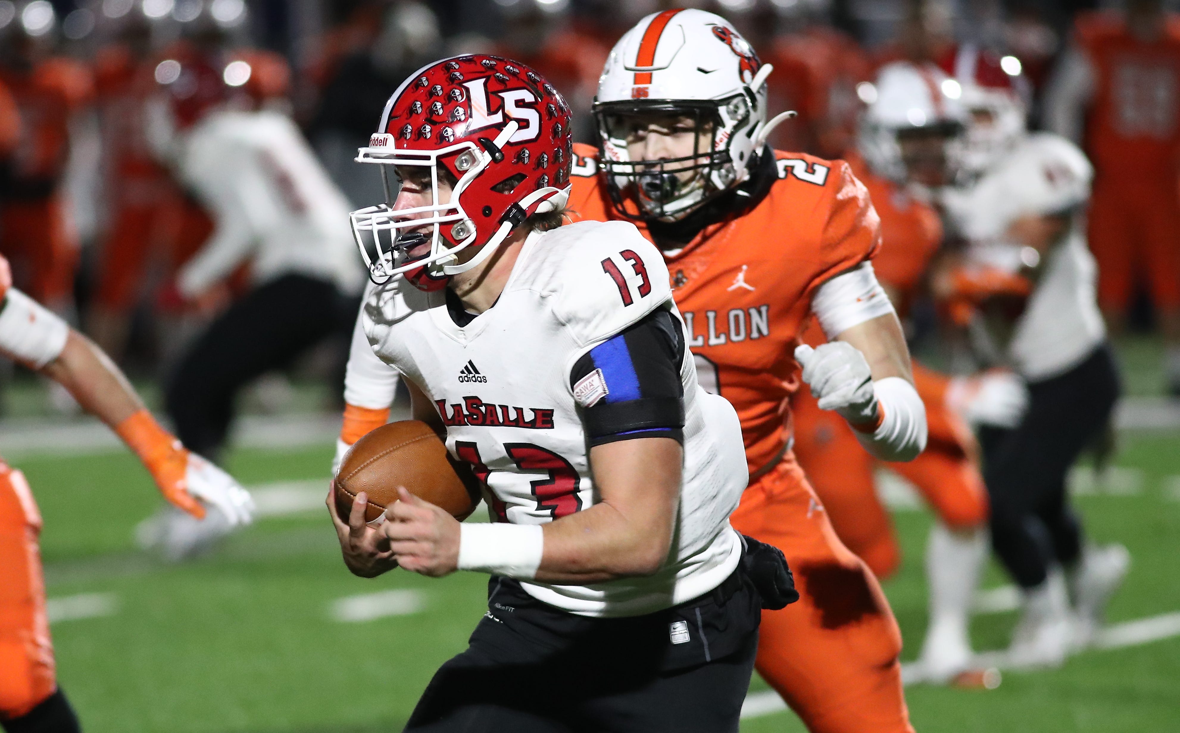 Quarterback Mason Mattingly who netted La Salles only score with a rush had -5 yards on the ground. 5 Elder 21 No.